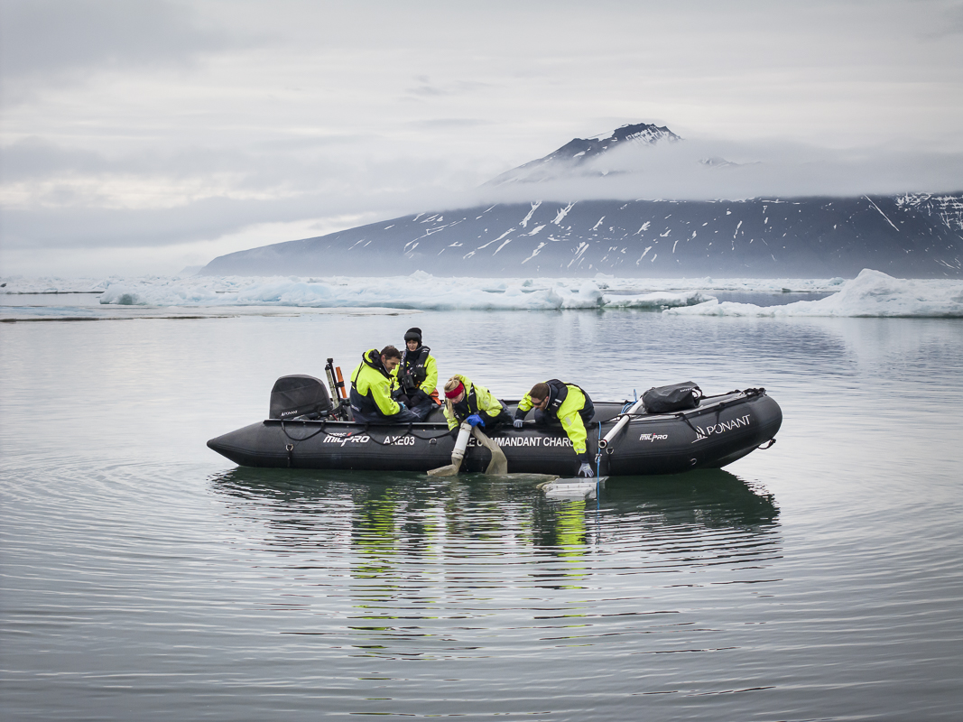 En juin et juillet 2023, j’ai travaillé pour le programme EU4OceanObs de la Commission européenne hébergé par Mercator Ocean International pour suivre une équipe de scientifiques dans l’océan Arctique à bord du brise-glace Ponant Le Commandant Charcot (un partenaire du Consortium de recherche sur les brise-glaces arctiques de l’UE). L’équipe a mené des recherches sur l’oxygène, les écosystèmes de l’océan Arctique et les plastiques marins afin de soutenir la Décennie des Nations unies pour les sciences de la mer au service du développement durable, le programme de la Décennie mondiale de l’oxygène de l’océan et le système intégré d’observation des débris marins.